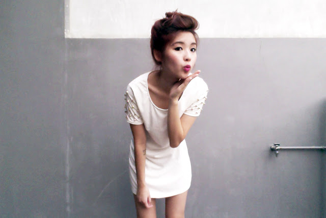 You know this is the kind of dress I will say has a mix fashion because the studs give it alittle edgyness yet it is still girly enough because it is a dress afterall and the cream colour keeps everything clean and neutral. Another way to give this dress a definite side would be the footwear you're gonna pair this with. You can pump it with creepers for a more grunchy feel or you can pair it with pumps for a girl-next-door look or a pair of chunky heels for the dress up wave!!